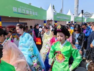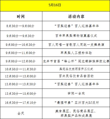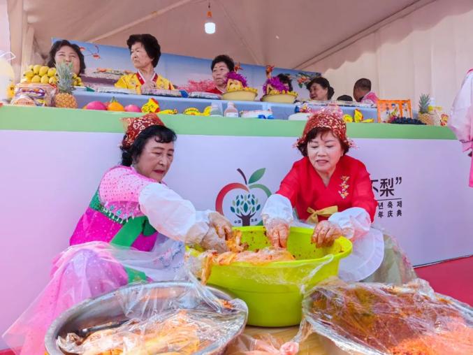 龙井市在活动现场设置美食、民俗商品、苹果梨产品和成果等展区,不仅让游客能够感觉到浓厚的朝鲜族农耕文化和苹果梨栽培文化,还能够品尝到地道的朝鲜族美食,让游客一饱口福。同时,现场还举办朝鲜族摔跤、农业食品产业发展论坛、百人巡游嘉年华、回婚礼、金婚展示、DJ派对等活动,让游客能够一边漫步于花海间,一边赏民俗,品佳肴,闻花香。