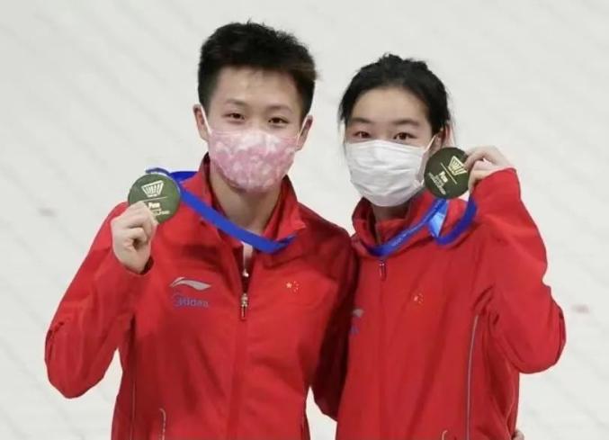 2021跳水世界杯暨东京奥运会资格赛,海南姑娘陈艺文(左)和队友获得女子双人3米跳板冠军。(家属供图)2021年东京奥运会在即,她作为奥运团队的一份子,陈艺文会同师姐们一起备战奥运。我们一起期待海南姑娘陈艺文能再创佳绩,为祖国争光,为家乡海南争光。