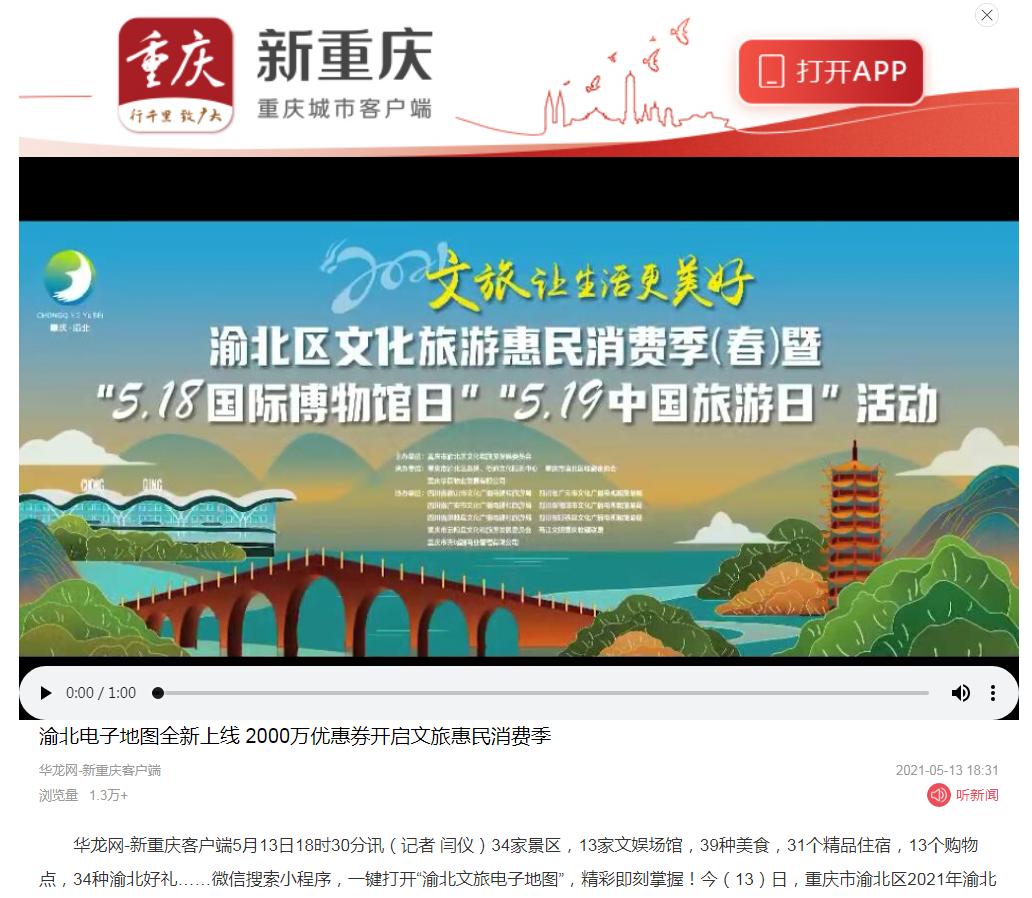 文旅企业惠民、渝北旅游电子地图上线、