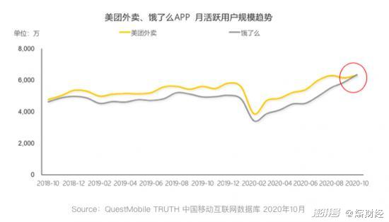 这无疑给美团带来了压力。一方面,参与百亿补贴的饿了么商家,订单增速较日常翻了一倍。另一方面,用户数量大涨。据QuestMobile的数据显示,去年10月份,饿了么的MAU(月活跃用户)超过美团外卖,是饿了么近两年来月活用户首次在App端高于美团外卖。
