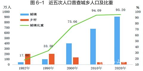 全市常住人口中,居住在城镇的人口为904.25万人,居住在乡村的人口为45.64万人,城镇人口比重为95.20%,比全省平均水平高出21.05个百分点,比2010年提升1.11个百分点,人口城镇化水平持续提高。随着新型工业化、信息化和农业现代化的深入发展和农业转移人口市民化政策落实落地,全市新型城镇化将继续稳步推进,城镇化程度越来越高。人口是城市经济发展和竞争力的重要因素。十年来,佛山人口发展趋势发生深刻变化,人口红利仍存,人口总量保持稳定增长,人口素质稳步提升,劳动力总规模依然庞大,人口集聚进一步增强,城镇化水平持续提高,但也面临人口结构老龄化风险的挑战,未来人口素质不断提高也是一个长期课题。七人普全面查清了全市人口数量、结构、分布等方面情况,准确反映了当前人口变化的趋势性特征,获得了大量宝贵的信息资源,我们将抓紧对普查数据进行整理、分析和开发,后续会采取更多方式公布和共享普查成果,配合相关部门加强人口发展的前瞻性、战略性研究,最大程度发挥普查的作用,为推动高质量发展、有针对性地制定人口相关战略和政策、促进人口长期均衡发展提供强有力的统计信息支持。