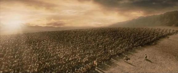 面对邪恶,他们当然也要为人类坚定信念。为了奋战到明天太阳升起,视死如归的洛汗骑兵,为了让人类不在今天被邪恶毁灭,慷慨赴死的刚铎勇士。