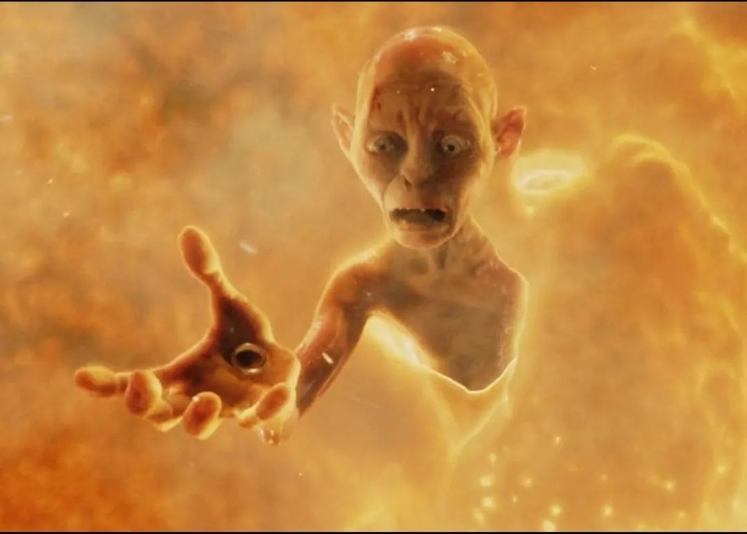 咕噜跌入烈焰,佛罗多却仍有一线生机,在悬挂着的悬崖之上,是山姆的呼唤,在岩浆之中,是还没有被毁灭的魔戒。