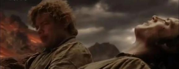 当阿拉冈为了佛罗多吸引索隆的注意时,山姆与佛罗多终于走进末日山,走到毁灭魔戒的最后一步。