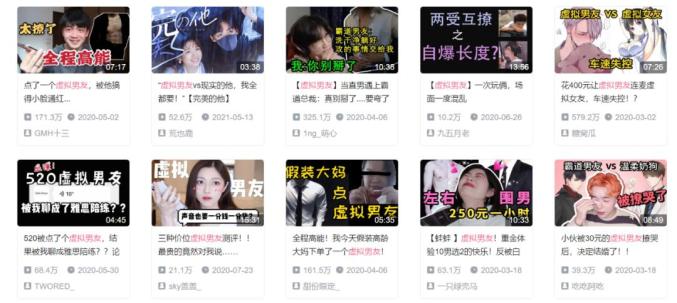 在视频网站搜索「虚拟男友」,有数千条相关视频,播放量上百万;