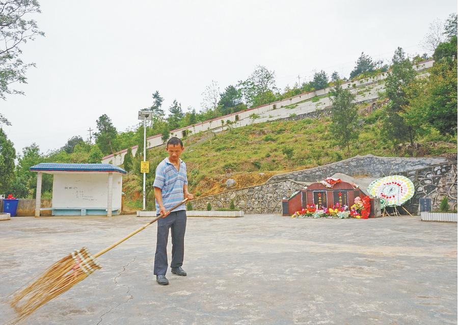 廖聪济刚刚忙完农活,习惯性地前往红七军革命烈士纪念园的李谦烈士墓旁转一转,先行一个礼,然后小心地擦拭墓碑和清扫周边的环境卫生。在他的精心照料下,红七军革命烈士纪念园舒适、清净、整洁。