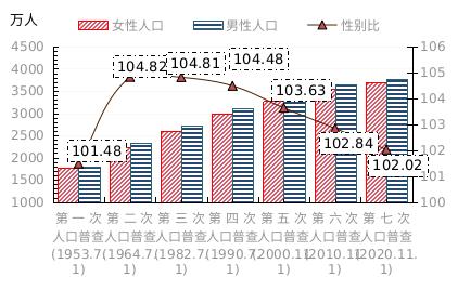 全省常住人口[2]中,男性人口为37679003人,占50.50%;女性人口为36931232人,占49.50%。总人口性别比(以女性为100,男性对女性的比例)为102.02,比2010年第六次全国人口普查下降0.82。