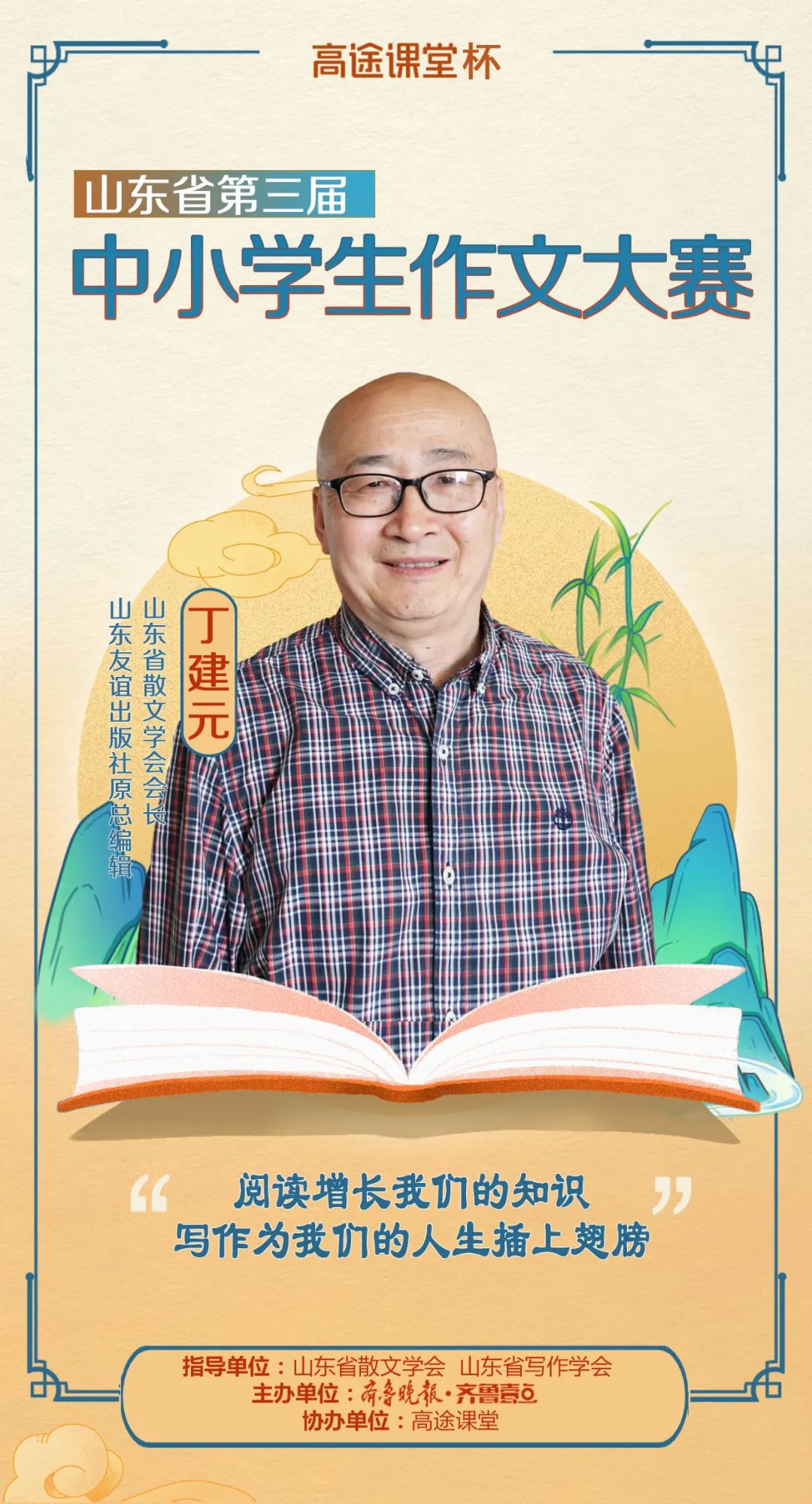 阅读增长我们的知识,写作为我们的人生插上翅膀。——丁建元 山东省散文学会会长 、山东友谊出版社原总编辑