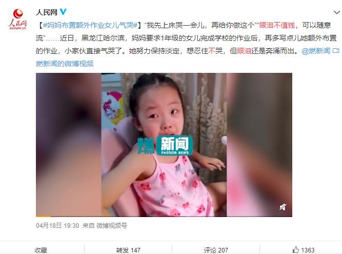 还有下面这个小姑娘,已经完成了学校布置的作业,却立刻被妈妈布置了新的作业。