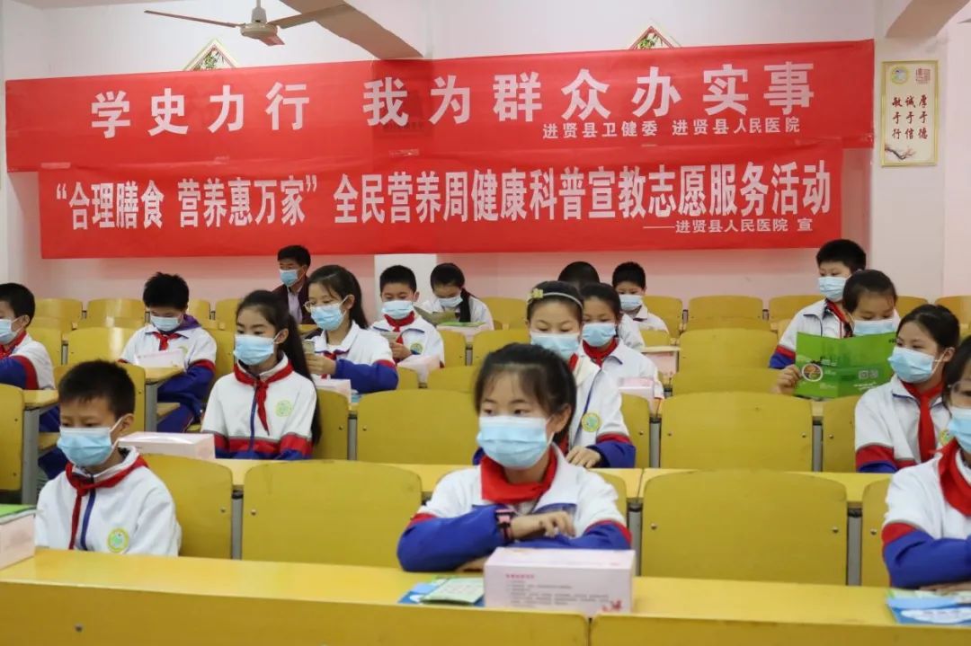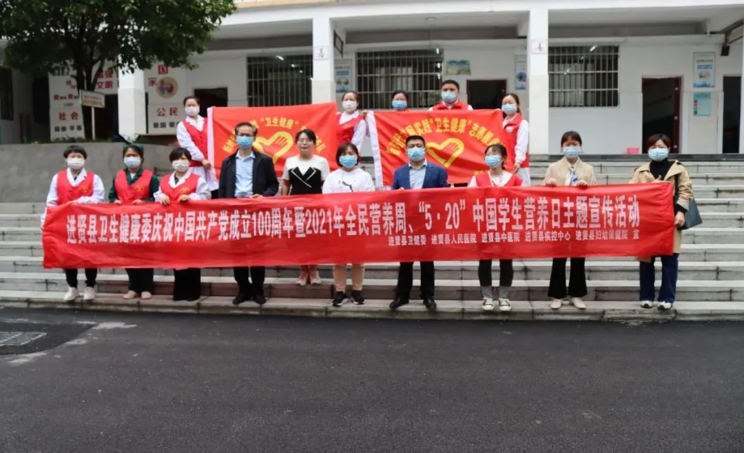 为热烈庆祝党的百年华诞,彰显省会进贤卫健担当,进一步推动落实《江西省国民营养计划(2018-2030年)实施方案》和《健康江西行动实施方案(2019-2030年)》,推进营养健康教育科普活动常态化,提高全民营养健康知识素养。5月20日上午,县卫健委组织县人民医院、县中医院、县疾控中心、县妇幼保健院等医疗卫生单位在民和三小举行庆祝中国共产党成立100周年暨2021年全民营养周、“5·20”中国学生营养日主题宣传活动。