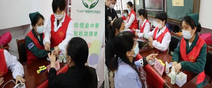 本次活动,县卫生健康委、县人民医院、县中医院、县疾控中心及县妇幼保健院一行12人共同组成健康科普专家服务志愿者团队,以人民健康为中心,结合党史学习教育工作、“转作风 优环境”活动年行动及当前常态化疫情防控形势,围绕“合理膳食 营养惠万家”、“珍惜盘中餐 粒粒助健康”宣传主题,开展营养健康科普、健康义诊服务,向广大师生详细讲解、传播《中国居民膳食指南(2021)》、《中国儿童青少年营养与健康指导指南(2021)》 核心信息,散发健康科普宣传折页、宣传单及宣传品,宣传合理膳食对于增强免疫、防控疾病的重要意义,普及“三减三健”(减盐、减油、减糖,健康体重、健康口腔、健康骨骼)知识,为大家免费量血压、测血糖,对大家的营养状况进行专业的分析和指导,倡导传承中华优良饮食文化,树立健康饮食新风,弘扬珍惜粮食、杜绝餐饮浪费的传统美德,摒弃滥食野生动物的陋习,建议大家多食水果蔬菜,加强体育锻炼,塑造自主自律的健康行为,传播营养科学思想,以实际行动推进落实“我为群众办实事”实践活动,把“三减三健”的理念落实到人民群众生活中,号召我县人民积极参与,将健康生活方式理念普及推广,进一步推动国民健康饮食习惯的形成和巩固,助力健康进贤建设,以优异成绩献礼建党100周年。
