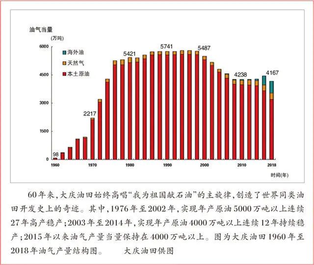 从诞生之日起,大庆油田就与祖国同呼吸、共命运,走出了一条中国共产党领导建设中国特色社会主义工业企业的成功之路,为国家建设作出了巨大贡献。如今的大庆,是中国最大的石油石化基地,中国第一、世界第十大油田大庆油田所在地。大庆油田含油面积6000多平方千米,已探明石油地质储量67亿吨。