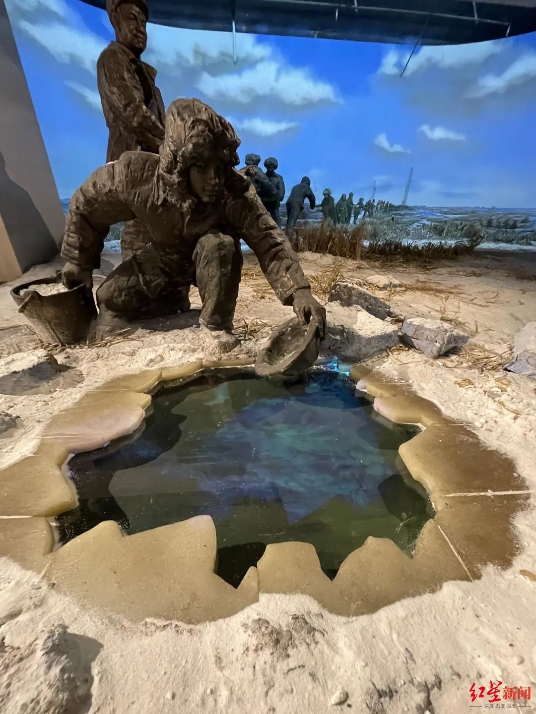 ▲王进喜纪念馆展品:石油工人凿开几十公分厚的冰层取水钻井。图据红星新闻