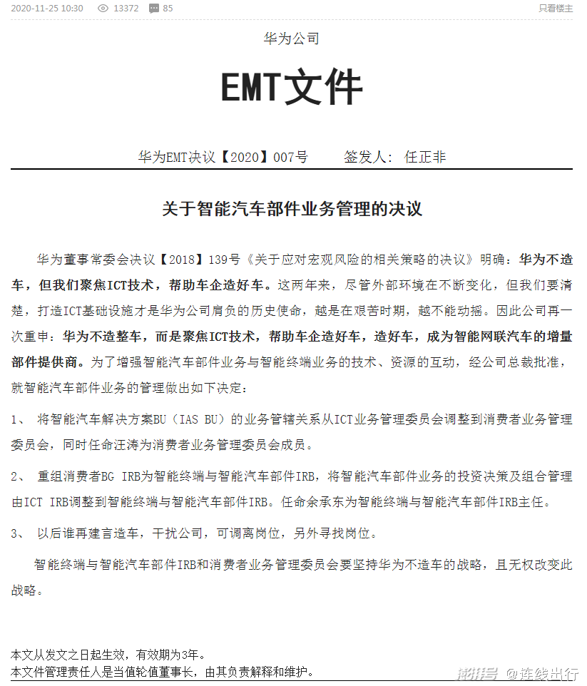 华为EMT决议【2020】007号,图源未来汽车日报
