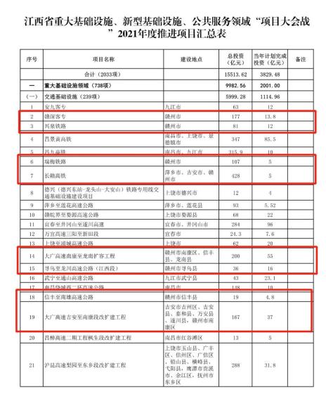 长赣高铁:稳定项目建设方案,尽快将项目可研联合报送国家发改委审批,争取2021年开工建设。