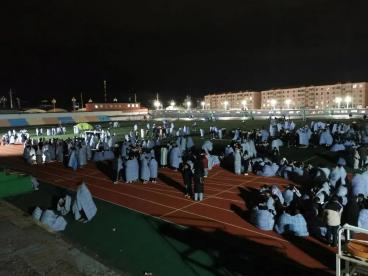 △5月22日凌晨,果洛州民族高级中学的学生在操场避险。经专家紧急会商,综合判定认为:本次地震为主震-余震型,余震活动水平为6级左右,不会对西宁、海东、海南、黄南等地的工作或生活造成大的影响。