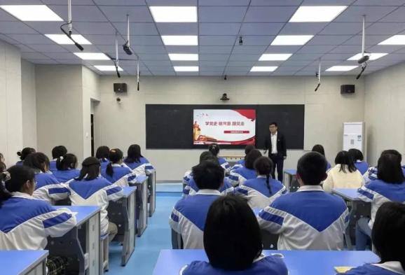 在全南中学,为讲好“学党史、颂党恩、跟党走”第一课,授课老师精心备课,充分利用多媒体课件、视频资料,引导学生了解党史,理解“没有共产党就没有新中国”的深刻内涵,提升学生对党的感恩之情。据了解,为激发青少年学习党史的热情,全南县积极构建了“课程+读本+基地+活动+宣讲”五位一体党史学习教育体系,发挥课程主渠道作用,将党史学习教育融入中小学思政课,组织开展“永远跟党走”红色经典诵读、“我心向党,快乐成长”主题演讲、征文等贴近青少年特点的宣传教育活动,让学生们汲取红色力量,坚定红色信念,传承红色精神。