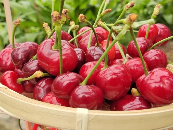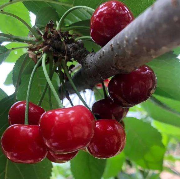 走进采摘园,车厘子树上挂满了果子:红色如小灯笼、橙色可爱诱人、暗红色如玛瑙令人垂涎,最晚熟的那批还黄中带青……摘一颗暗红色的车厘子品尝,鲜美的果肉瞬间在嘴里“爆浆”。