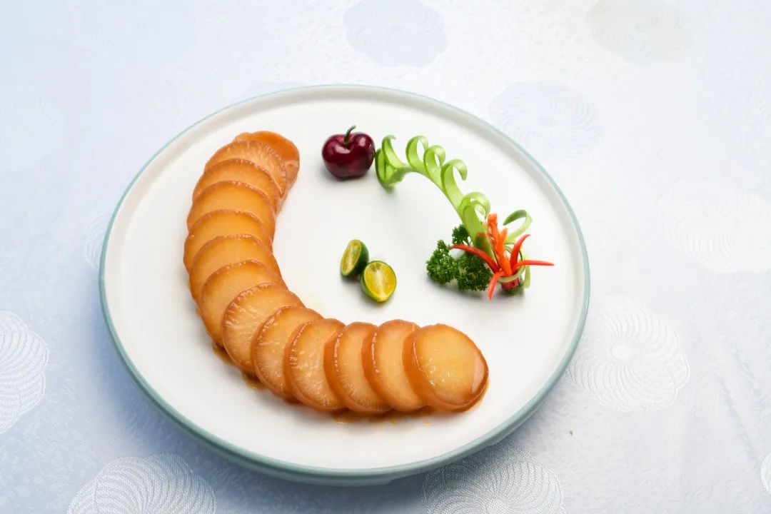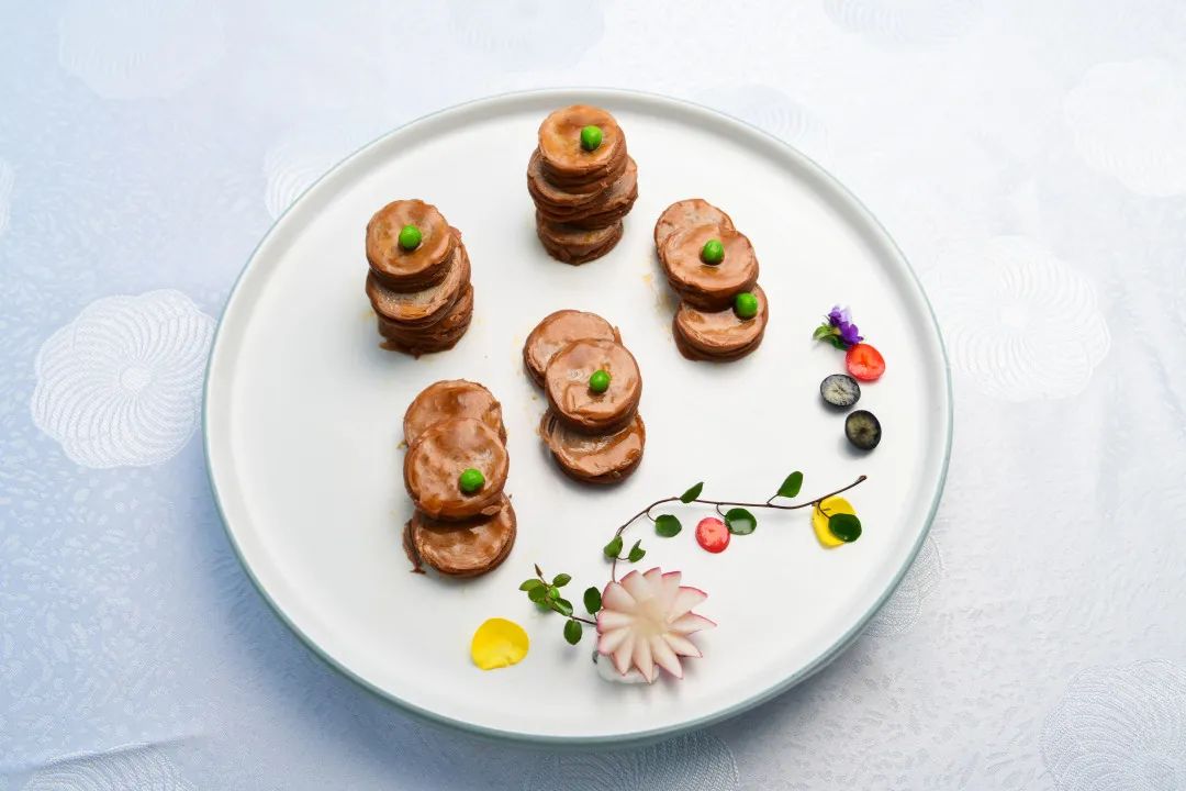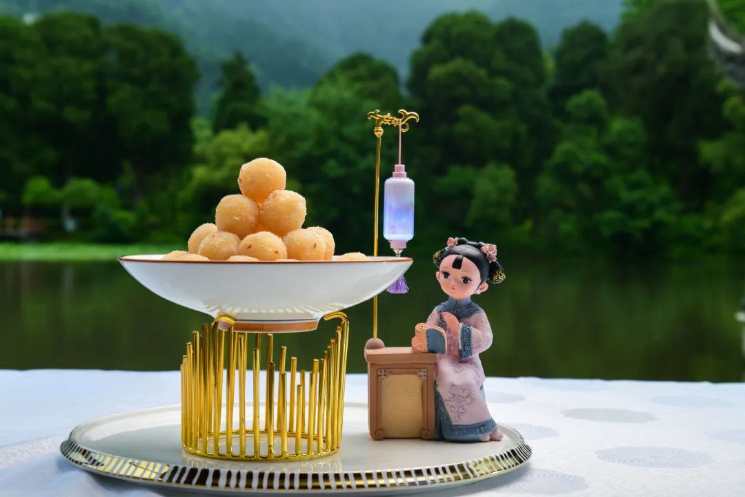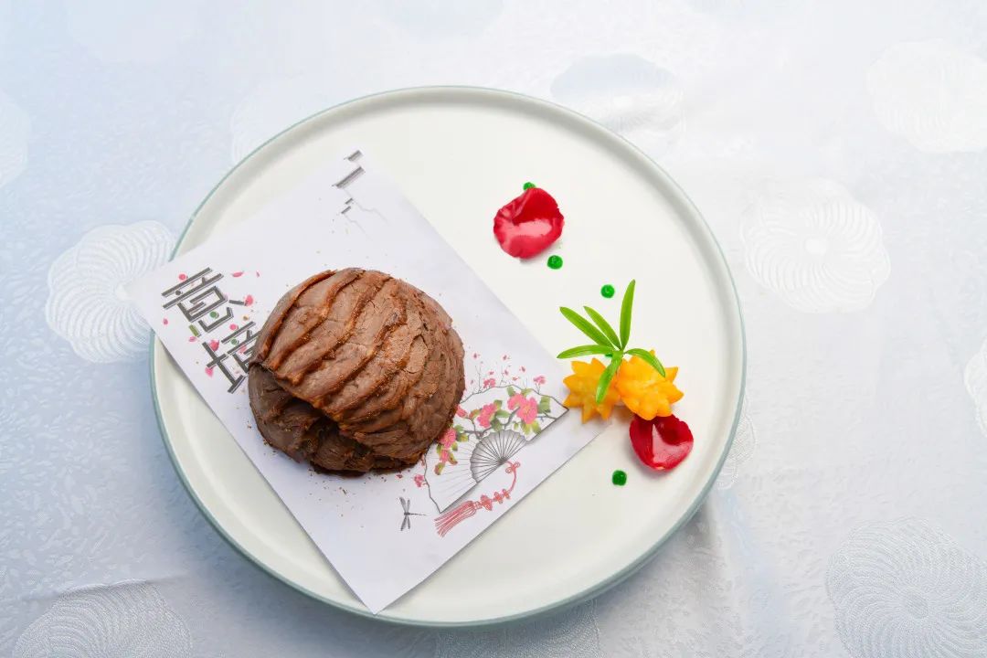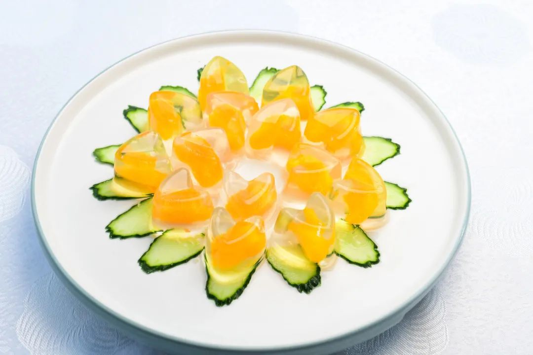 橘子慕斯以厨师们的匠心巧手呈现出来,其味似橘,酸甜绵软;其形若橘,象征着吉祥如意、团圆美满。