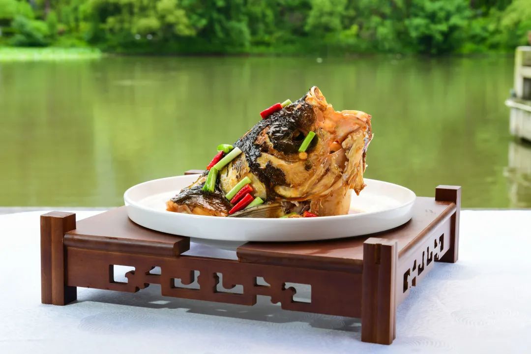 橘黄鱼肥以长潭水库的胖头鱼为主料。“最美人间四月天,橘花吐蕊溢芬芳”这联诗句描写的季节正是长潭胖头鱼的最佳赏味期,此时的胖头鱼诚为人间至味。