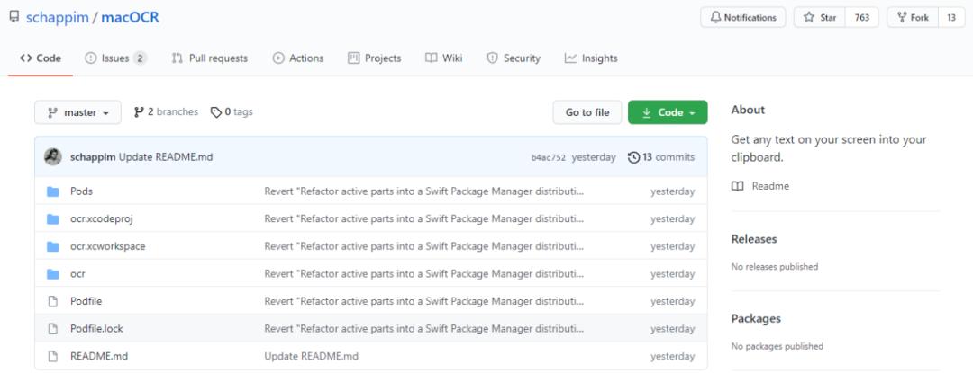 近日,GitHub 上又出现了一个非常火的 OCR 工具 macOCR,短短一天时间,就收获了近800赞。macOCR 是一个开源命令行应用程序,用户可以使用它将屏幕上的任何文本转换为剪贴板上的文本。