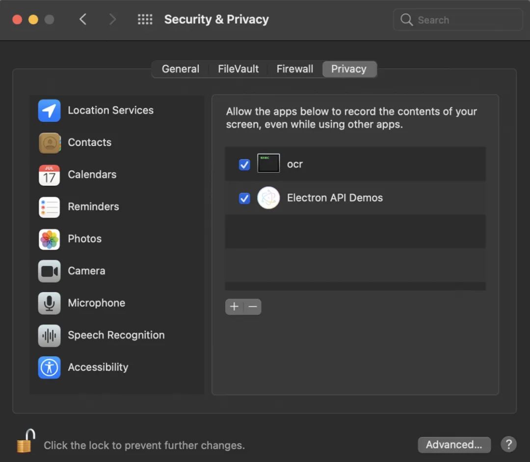 当首次运行 macOCR app 时,用户可能需要「允许该 app 访问你的屏幕」,示意图如下:
