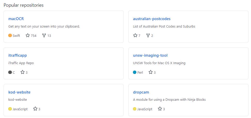 目前,他的 GitHub 主页上有多个项目,比如 macOCR、kod-website、dropcam 等。