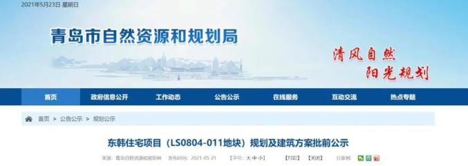 青岛市自然资源和规划局最近发布了东韩住宅项目(LS0804-011地块)规划及建筑方案批前公示,该地块位于崂山区株洲路南、高荣路东、科苑纬一路北、规划二号路西。