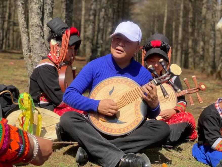 俄木以体将自己弹奏月琴的视频上传网络平台成为阿铁老师的学生