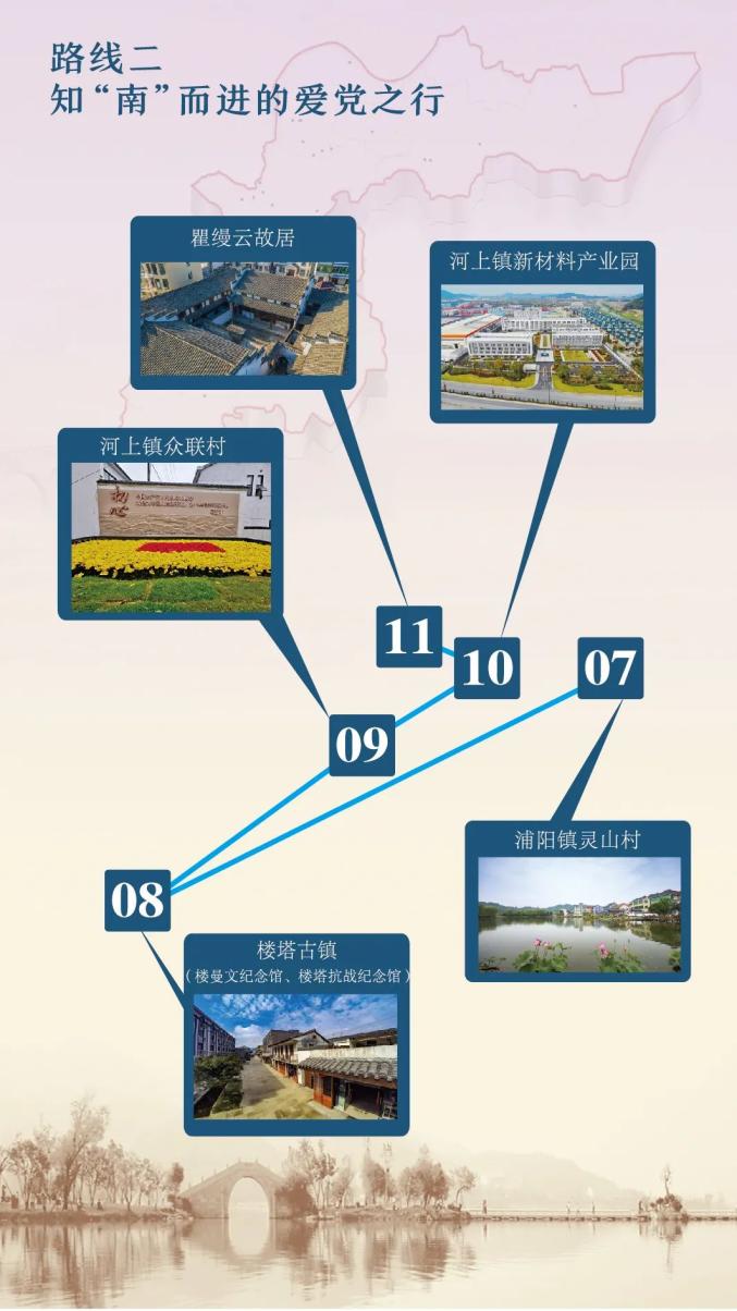 在黑暗与光明的较量中,有多少萧然儿女无私奉献、深明大义,有多少优秀党员鞠躬尽瘁、死而后已。他们见证了中国共产党成长的全过程,他们在萧山南片留下了革命人满怀激情、热血奋斗的缩影。夕阳生辉忆初心,革命精神映山红。风雨百年,革命之花竞相绽放,呈现出新时代的气息,谱写着美好未来的序曲。线路三