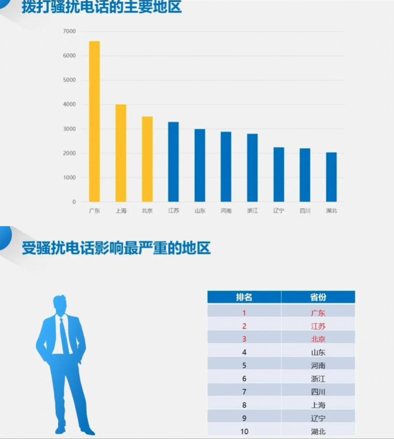 受骚扰电话影响最严重的主要地区(前三)依次为: