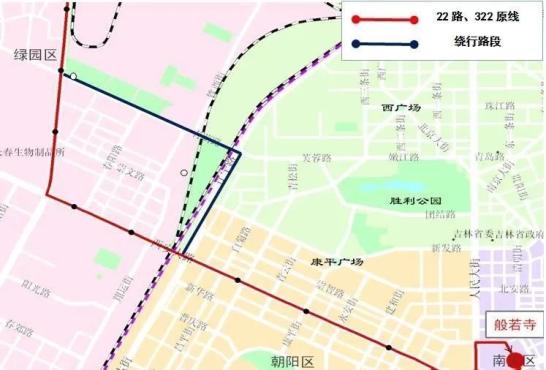 22路、322路绕行方案:绕行青荫路⇌芙蓉桥⇌辽宁路至西安大路回到原线。