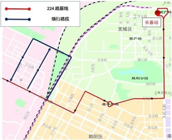 224路绕行方案:线路上行绕行铁西街→青荫路→芙蓉桥→辽宁路至西安大路回到原线。