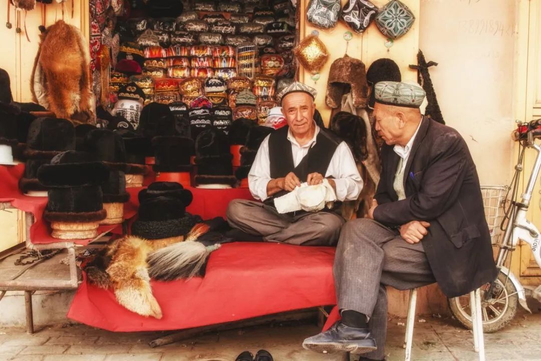佩戴小花帽是维吾尔族人几百年来的传统,喀什尤其盛产花帽。女性的花帽斑斓艳丽,男性的花帽淡雅朴素。每逢节日、婚礼、或歌舞盛会,人们都要挑上一顶心爱的小花帽。