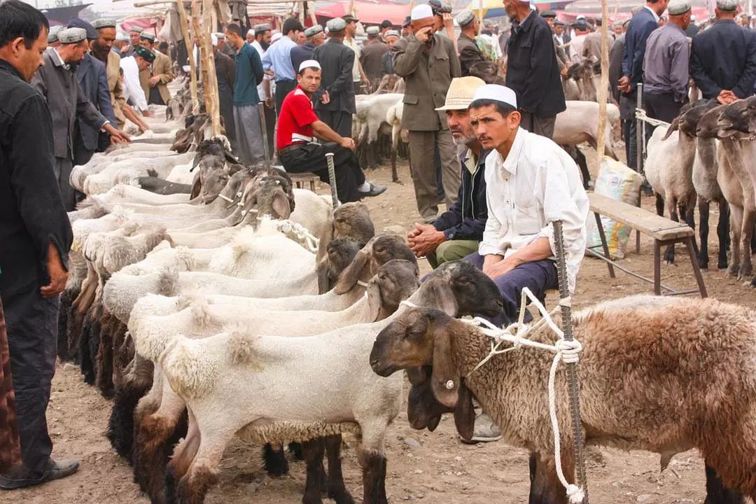 在“巴扎”上,也常会见到店铺商人与贩羊人直接在街中进行交易。