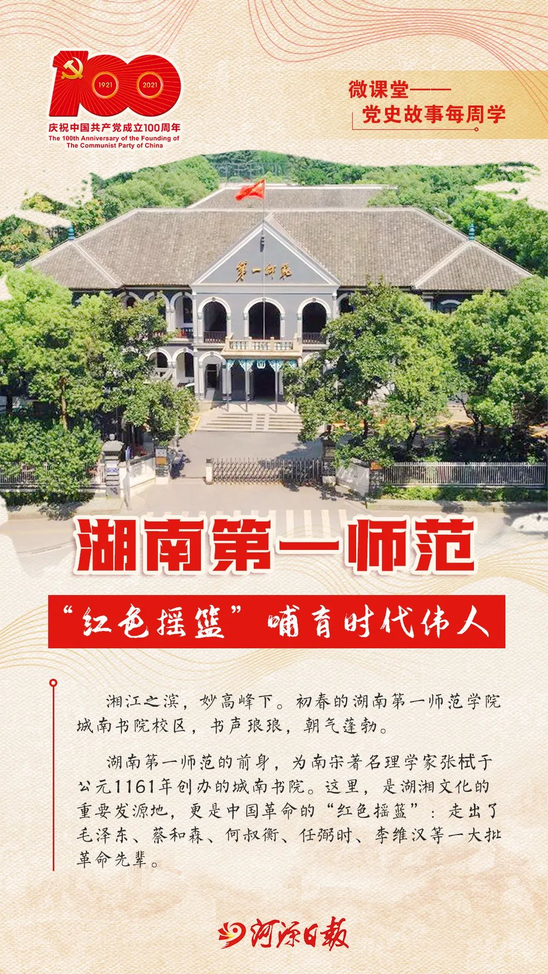 原标题:《党史故事每周学|湖南第一师范:“红色摇篮”哺育时代伟人》