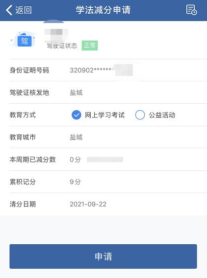 在试点期间,盐城本地驾驶人,交管12123APP注册地和驾驶证核发地为均为盐城,可以通过“交管12123”APP学法减分功能申请参加用户注册地的网上学习考试。对于驾驶证类型目前没有限制,符合条件的A、B类证件也可申请。