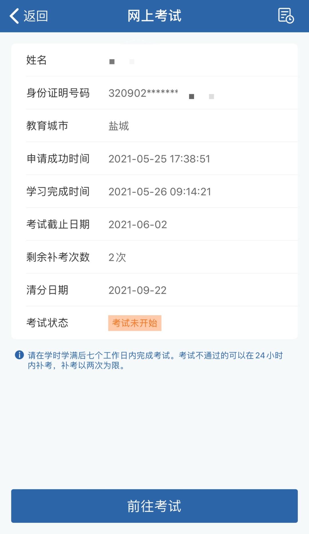 NO.5 点击【前往考试】学习成功后点击【前往考试】。