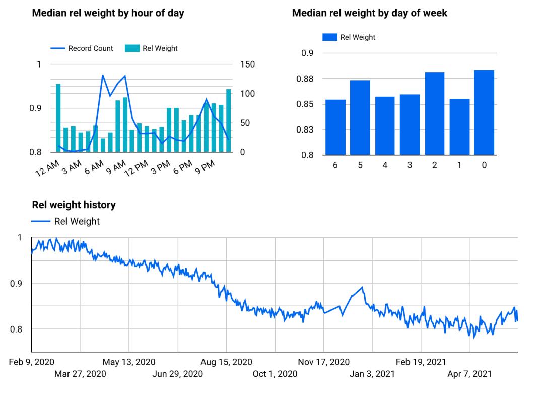 图:过去一年的相对体重如果体重明显超过正常值,一上来就跑,很可能造成伤害。我个人是先 50K 左右的月跑量,等到相对体重到了 90% 后,提升到了 100K 的月跑量。