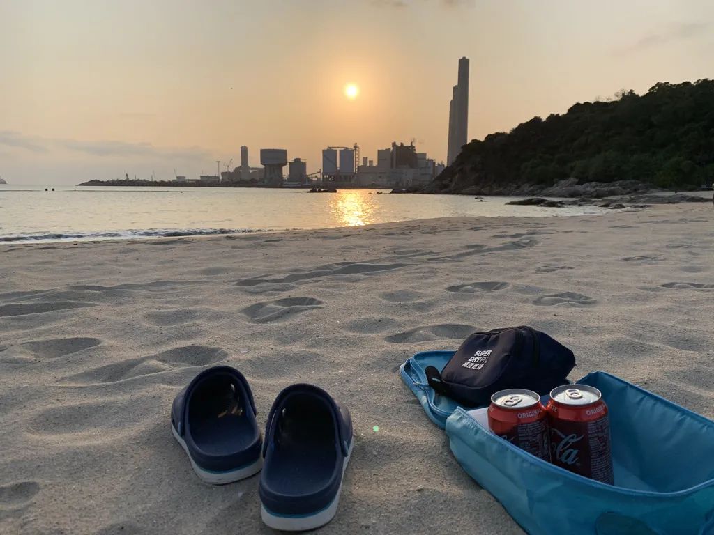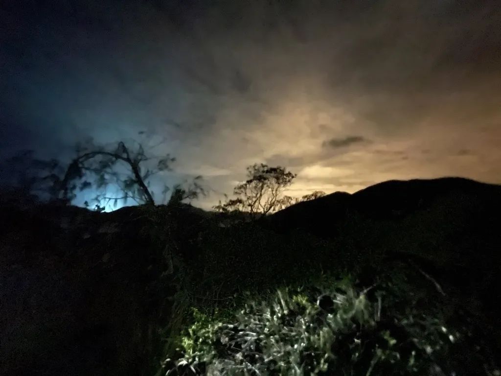 割龙起点:西湾沙滩第一次把这三要素综合利用起来的快感,来自 80K 的割龙。因为到起点还有一定步行,所以实际上的距离接近是 90K。这是我有史以来单次步行的最长距离,也是第一次通宵行走,路线上还有 60% 是从来没有走过的。好在队友很稳,一路都是正常速度行走。抓住落地的机会,就停下来吃饭和大休。中间也根据推算时间,几次改道,比预期的爬升减少了一点。众多巧合之下,在经过城门水塘的时候,居然遇到了周润发,但我们都没兴趣合照,只想在中午烈日到来前上到大帽山。