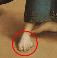 一些医生认为,拉斐尔并不是故意加上第六根指头的,而是为了描绘文艺复兴时期一种常见的疾病——痛风。痛风通常会导致皮肤凸起,因此绿袍男士小脚趾旁边的肿块可能是“痛风包”。