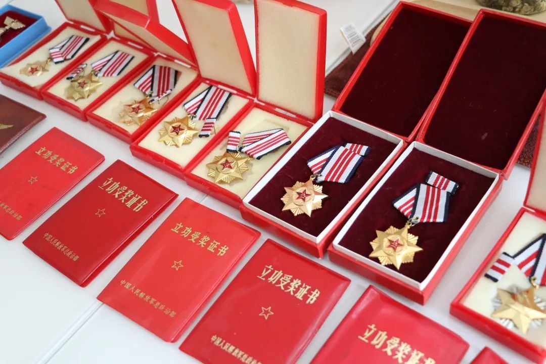 采访中,陈安德拿出了一个红色的包裹,他小心翼翼地打开,里面是一枚枚闪亮的军功章。他说:“这些年,我立过很多功,得过很多奖,但这些荣誉的取得,有我老伴儿的很大功劳。”