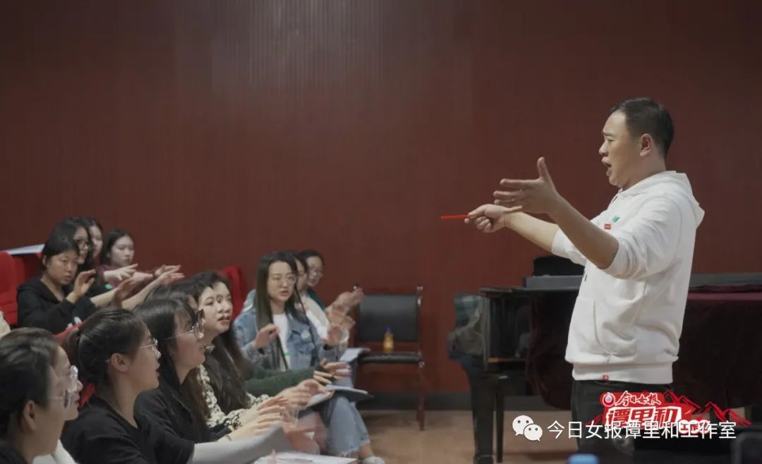 5月22日(周六),王育霖在启航学校指导小学生合唱。 本文图均为 今日女报谭里和工作室微信公众号 图
