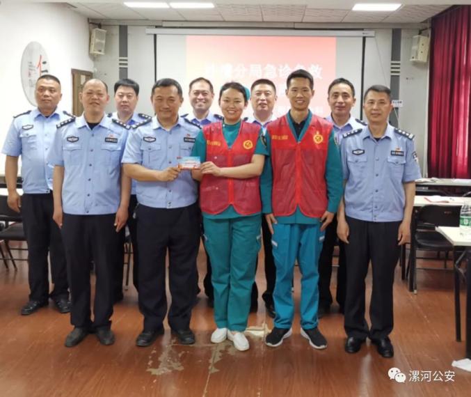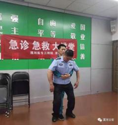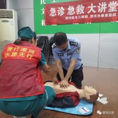 此次活动邀请漯河市医专三附院急救中心医护人员在现场开展急救知识培训,分局全体民警参加培训。