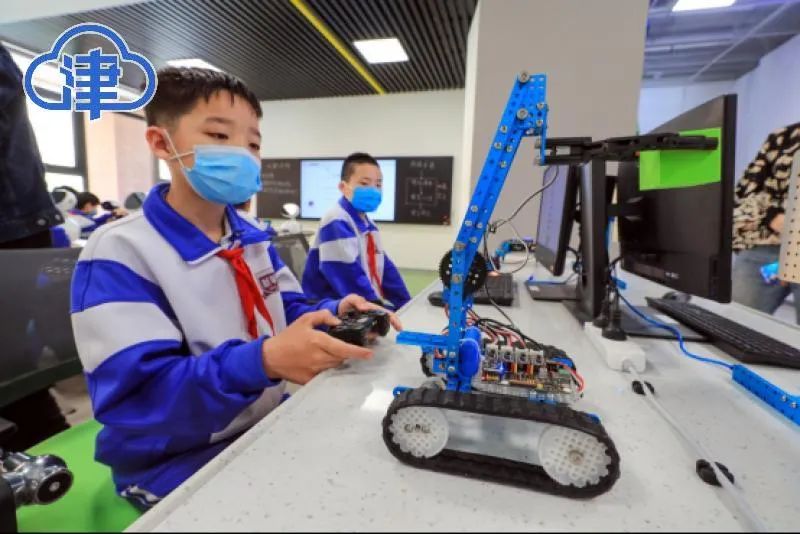 【智慧新课堂】通过图形化编程学生可以操作机械手臂,依托5G技术学生能够体验非遗文化……天津市第二新华中学人工智能课程体系打破传统教育场景,让学生在智慧场景中学习成长。