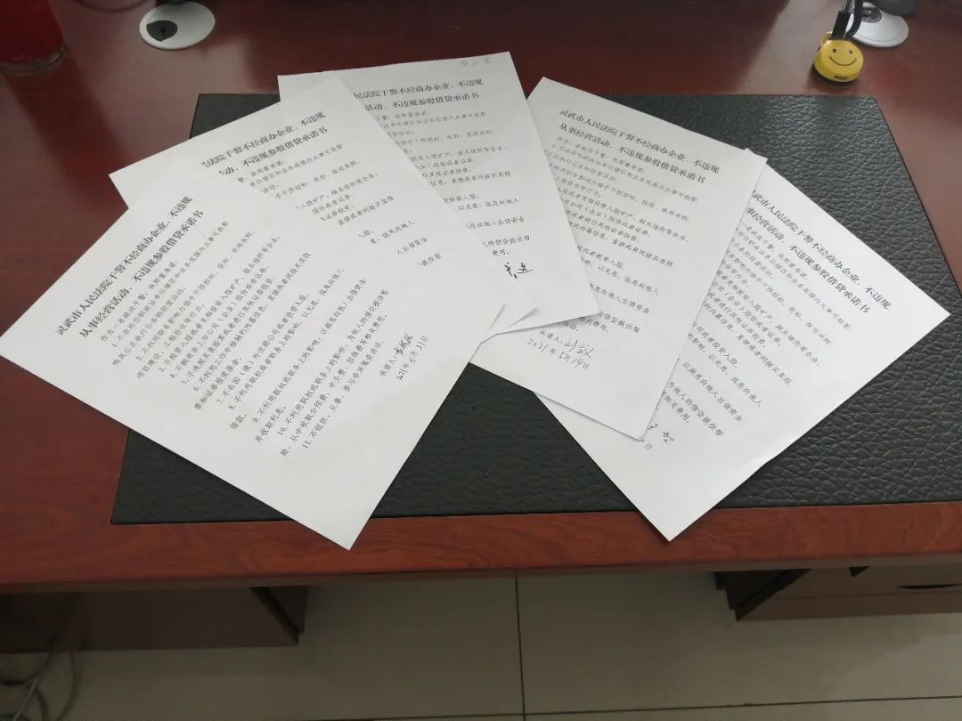 5月14日 向全体干警及家属发放《家风倡议书》,并组织填写《不经商办企业、不违规从事经营活动、不违规参股借贷承诺书》。5月17日 召开政法队伍教育整顿专题民主生活会。班子成员围绕七个方面逐一对照检查,严肃开展批评与自我批评。