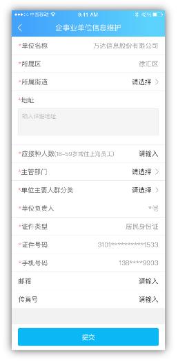 2)填写“企事业单位信息”请确保信息准确与完整后提交。
