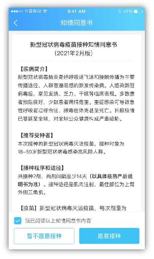2)查看知情同意书,选择是否接种。