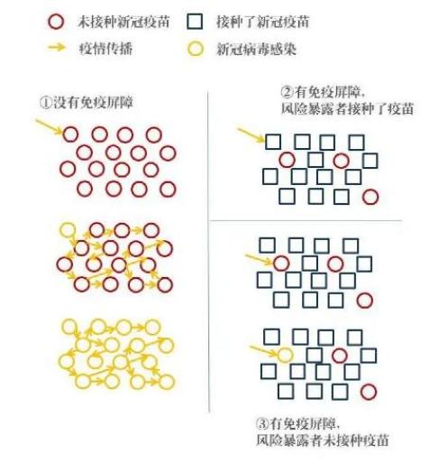 所谓免疫屏障,是指当大多数人都获得免疫疾病的能力时,他们就像组成了一座密不透风的围墙,使得疾病很难在人群中扩散,无法对人群造成太大影响。按照新冠病毒传播系数计算,一般需要70%-80%的人接种疫苗,才可以有效控制疫情传播,如果大家都想做被保护的20%-30%,那么谁来做70%-80%?