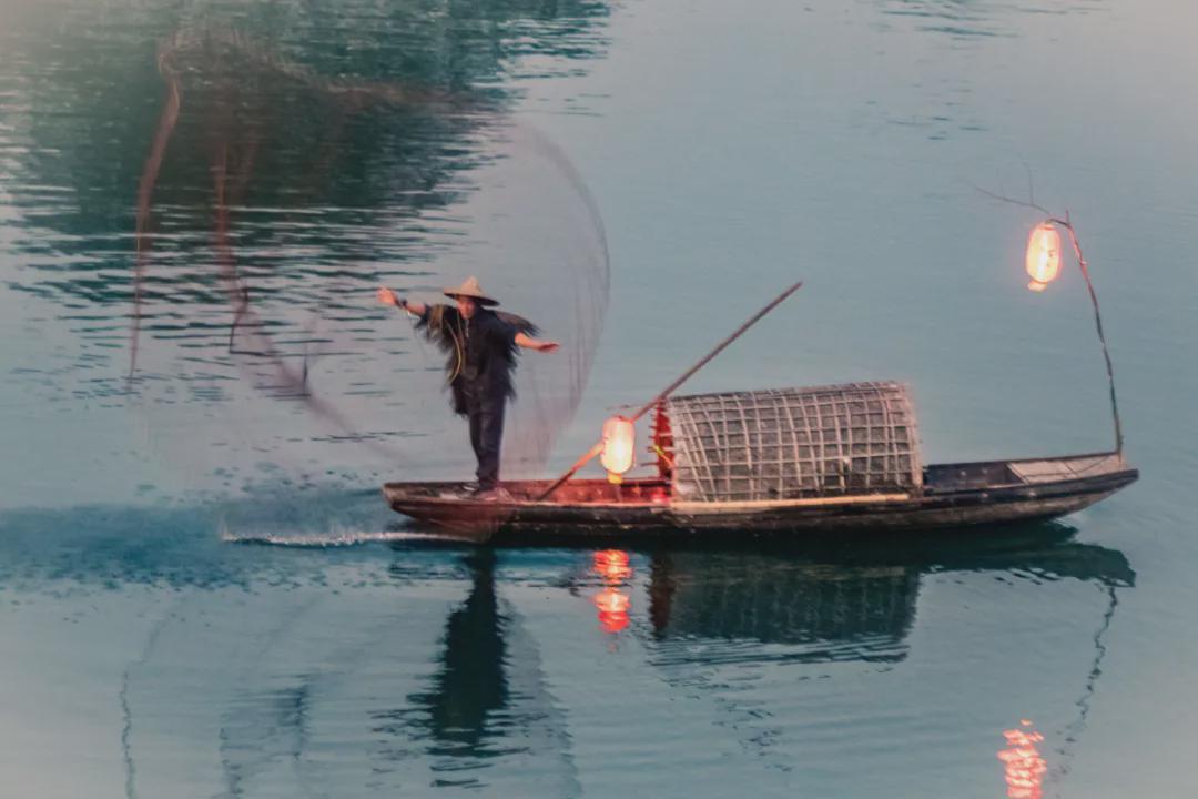 雨过天晴驾小船,鱼在一边,酒在一边。